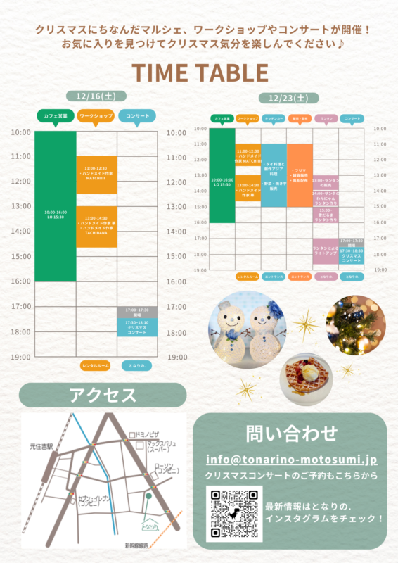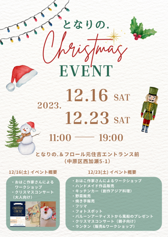 今回は12/16(土)のプレクリスマスと12/23(土)のクリスマスイベントの2日間!